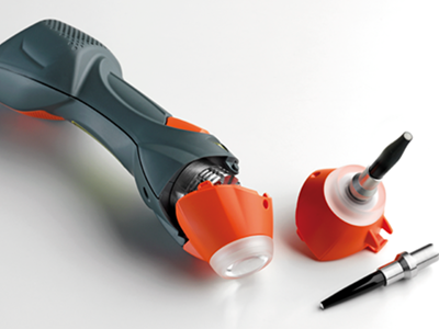 - Handpiece with Ø 2 cm Target Area highlighted by high efficiency red LEDs