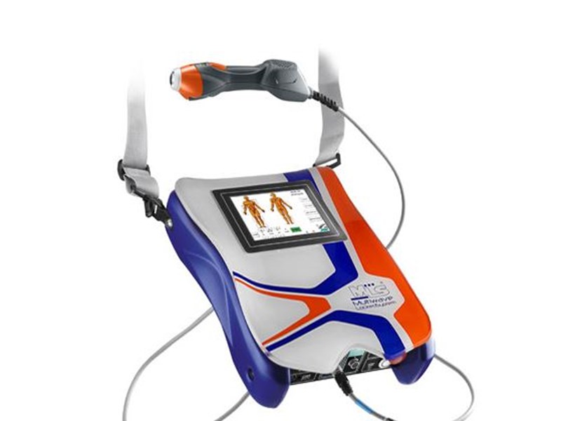 Mphi 75, the portable device with a laser acupuncture mode, with optional trolley. Easy to transport, and easy to use, making it ideal for use in clinic or in the patient's home.