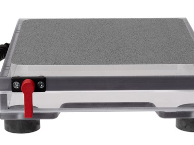 This product is a full protection box made of 20mm polycarbonate material that withstands the weight of the horse’s foot while in standing position during X-ray exams. Because of the particular angle, the horse is standing comfortably, and there is more space for the generator. The top surface comes with a translucent anti-slip surface. A lock secures the opening of the insert.
